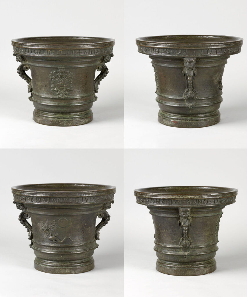 Ambrogio Lucenti (Italian, 1586‒1656), Mortar, 1653, cast bronze, H: 49 × Diam: 53 cm. Ospedale di Santo Spirito in Sassia, Rome, recorded as no. 1200217929 in the Italian Catalogo Generale dei Beni Culturali